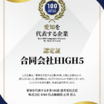 - 愛知を代表する企業に選出されました!この度、合同会社HIGH5は名誉ある〈愛知を代表する企業100選〉に選ばれる栄誉を賜りました。 これもひとえに… 続きを読む: 愛知を代表する企業に選出されました!